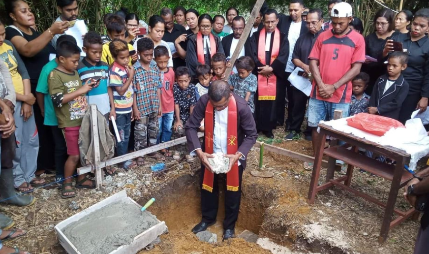 Dobo – Peletakan batu penjuru pembangunan gedung Sekolah Minggu Tunas Pekabaran Injil (SMTPI) sektor Tigris, jemaat GPM Dobo, di laksanakan, Sabtu (14/3/2020).
