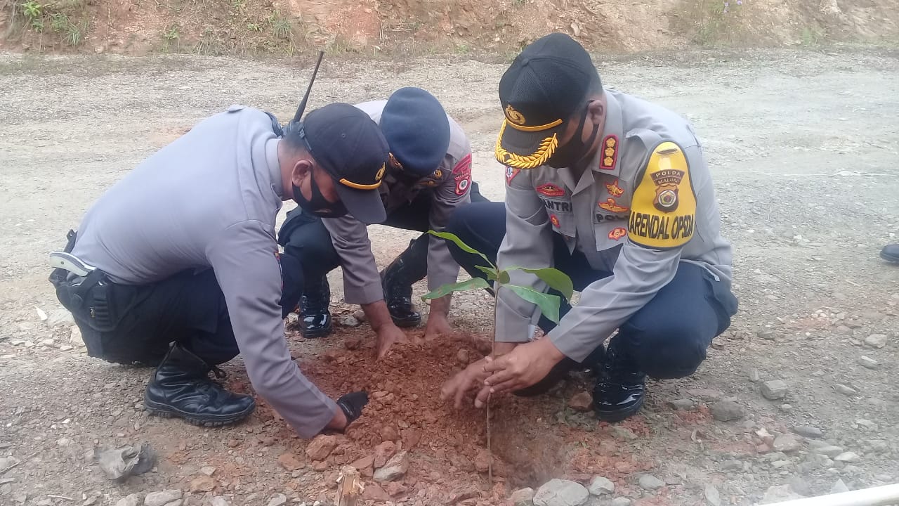 Selain memantau lokasi Gonung Botak, Kapolda juga menyapa anggota PAM yang terdiri dari 11 Personil Brimob, 9 Personil Polres dan 9 Kesatuan TNI Kodim 1506/Namlea, yang sedang bertugas di pos Jaga Kali Anahoni, sekaligus Kapolda Maluku penanaman anakan pohon Ketapang menghijaukan bibir Sungai Anhoni