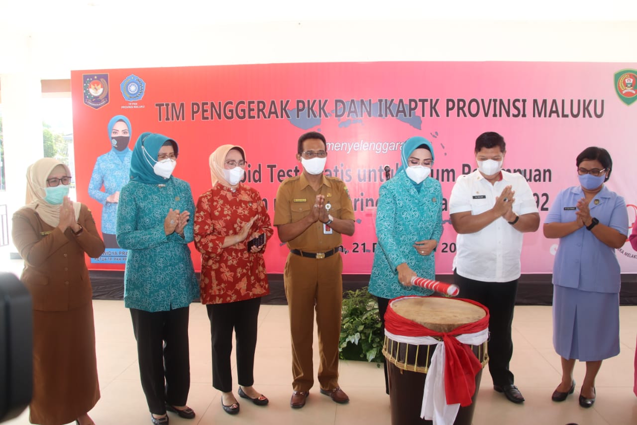 Ambon, Kabaresi.com – Dalam rangka menyambut Hari Ibu ke -92 Tahun 2020, Tim Penggerak PKK Provinsi Maluku bersama Ikatan Keluarga Alumni Pendidikan Tinggi Kepamongprajaan (IKAPTK), menggelar Swab Antigen atau Rapid Test Antigen gratis yang dipusatkan di Tribun Lapangan Merdeka, Ambon, Senin (21/12/2020).