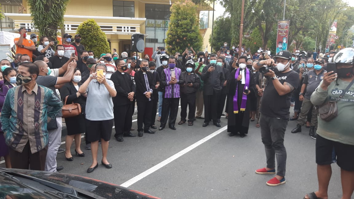 Jenazah Bapak “SPT” juga didoakan di depan Gedung Gereja Maranatha oleh Ketua Sinode GPM.