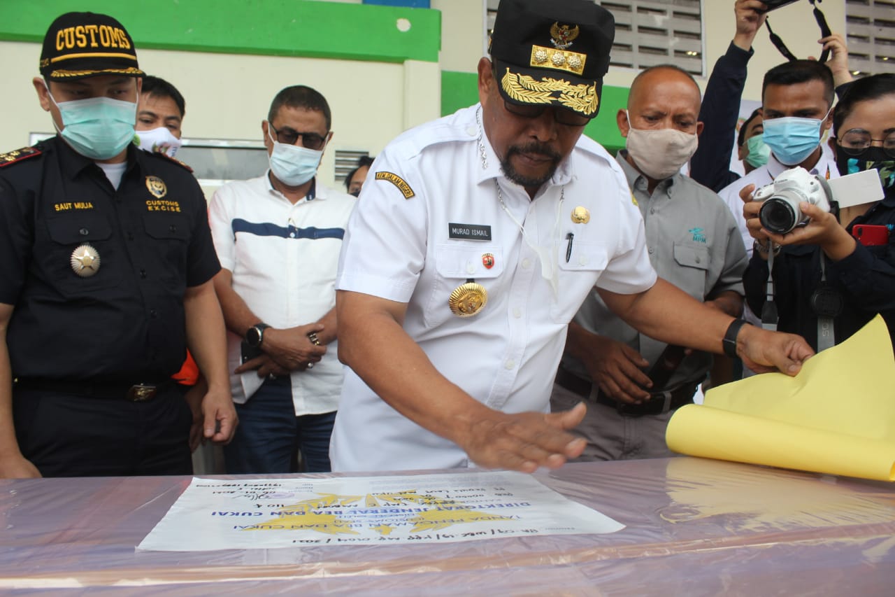Ambon, Kabaresi.com – Gubernur Maluku Murad Ismail melepas ekspor Komoditas Perikanan berupa Ikan Tuna ke Narita Jepang, Rabu (6/1/2021), ditandai Pemasangan Label Bea Cukai dan Penyerahan Dokumen oleh Gubernur kepada PT. Peduli Laut Maluku.