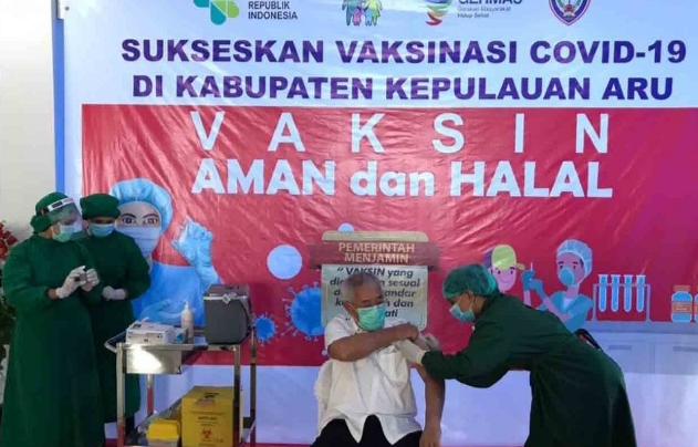 Dobo, Kabaresi.com – Bupati Kepulauan Aru dr Johan Gonga menjadi orang pertama yang menerima suntikan vaksin covid-19 di Kabupaten Kepulauan Aru.