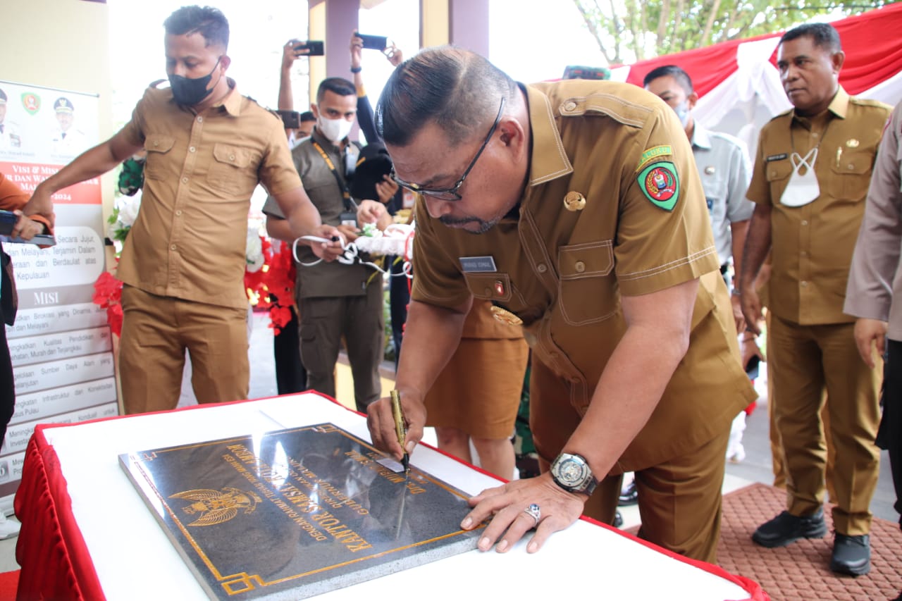 Ambon, Kabaresi.com – Gedung Samsat Induk Provinsi Maluku, diresmikan Gubernur Maluku Murad Ismail pada Senin, (12/4/2021). Peresmian gedung di kawasan Waihaong ini ditandai dengan pengguntingan pita.