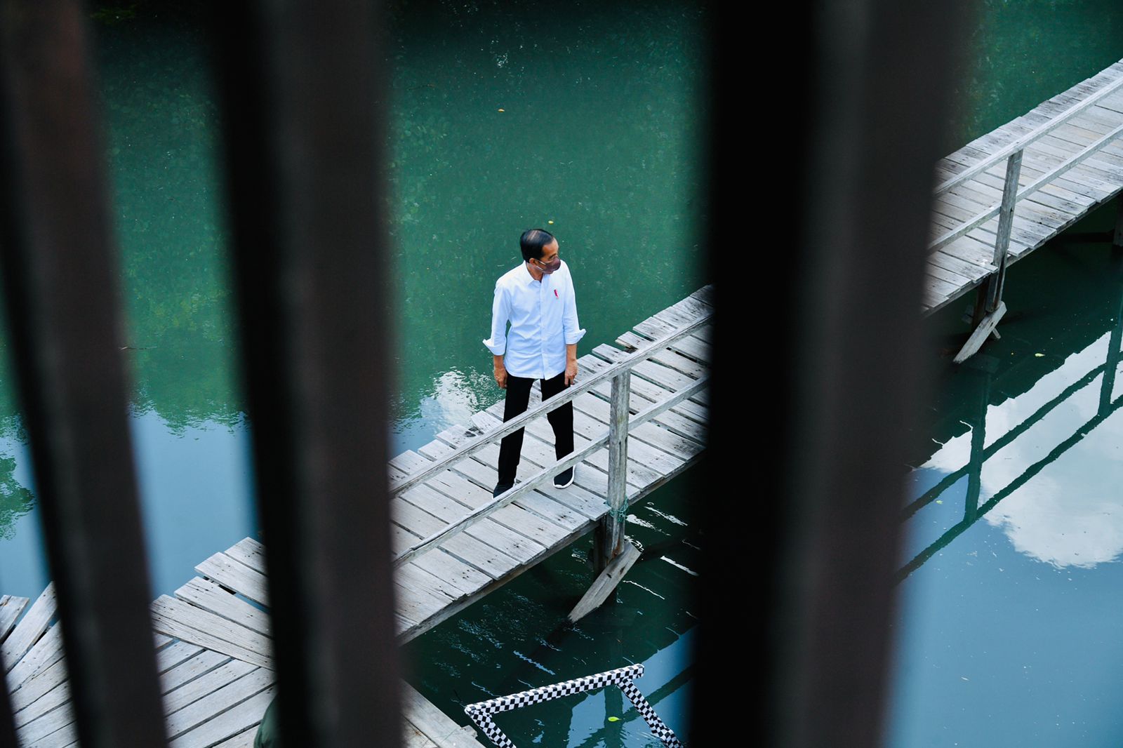 Denpasar – Tiba di Bali, Presiden Joko Widodo dan Ibu Negara Iriana Joko Widodo bersama rombongan langsung meninjau hutan mangrove di Taman Hutan Raya Ngurah Rai, Kabupaten Badung pada Jumat, (8/10/2021) pagi.