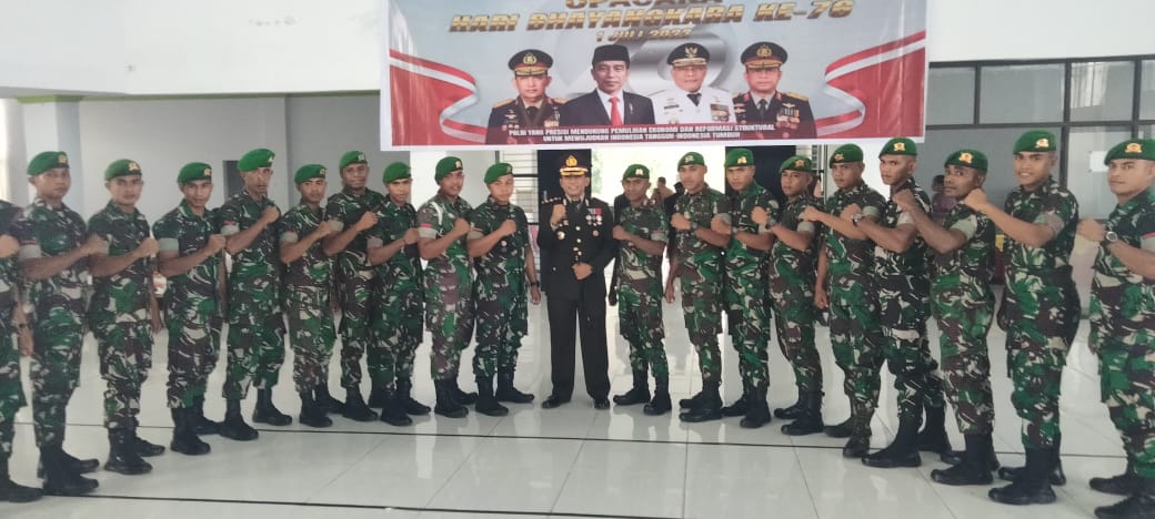 Namrole – Peringatan HUT Bhayangkara ke- 76 yang di pusatkan di Kampus Akademi Kepolisian, di kawasan Candi, Semarang, Jawa Tengah, dengan inspektur upacara Presiden Joko Widodo, Selasa (5/7/2022),  juga diikuti Kapolres Buru Selatan dan jajaranya secara virtual, di Gedung Serba Guna Pemda Kabupaten Buru Selatan (Bursel).