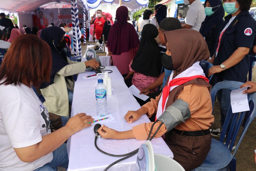 “Jadi, kalau ada anggota masyarakat yang tidak bisa bangun karena sakit, mungkin perlu diinformasikan agar bisa kita kunjungi. Mobil ambulance disiapkan untuk dapat mengangkut atau melayani langsung di rumah. Kalau ada tindakan operasi, kita akan melakukannya di rumah sakit. Jadi mohon kerjasamanya, agar diberitahu kepada masyarakat yang belum tahu tentang pelaksanaan kegiatan ini,” imbaunya.