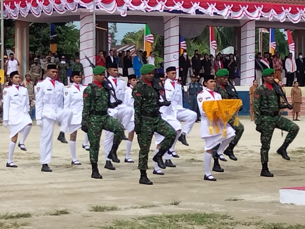 Dobo – Upacara peringatan HUT Kemerdekaan RI ke- 77, berlangsung di Lapangan Yos Sudarso Dobo, dengan inspektur upacara Bupati Kepulauan Aru dr Johan Gonga, Rabu (17/8/2022).