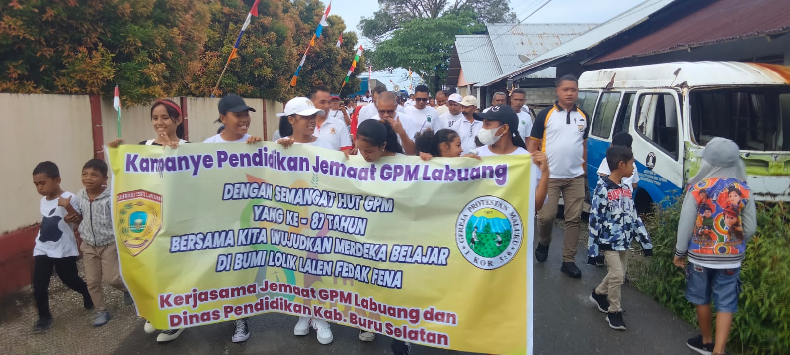 Namrole – Dinas Pendidikan Kabupaten Buru Selatan bersama Jemaat GPM Labuang, Kecamatan Namrole,  menggelar jalan santai sepanjang 4 kilometer dan kampanye pendidikan, Selasa (6/9/2022).