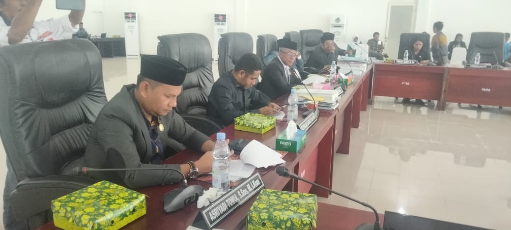 Sidang Paripuna tersebut dibuka Wakil Ketua I DPRD, Jamatia Booy di damping Wakil Ketua II La Hamidi, dihadiri 12 anggota dari 20 anggota DPRD setempat.