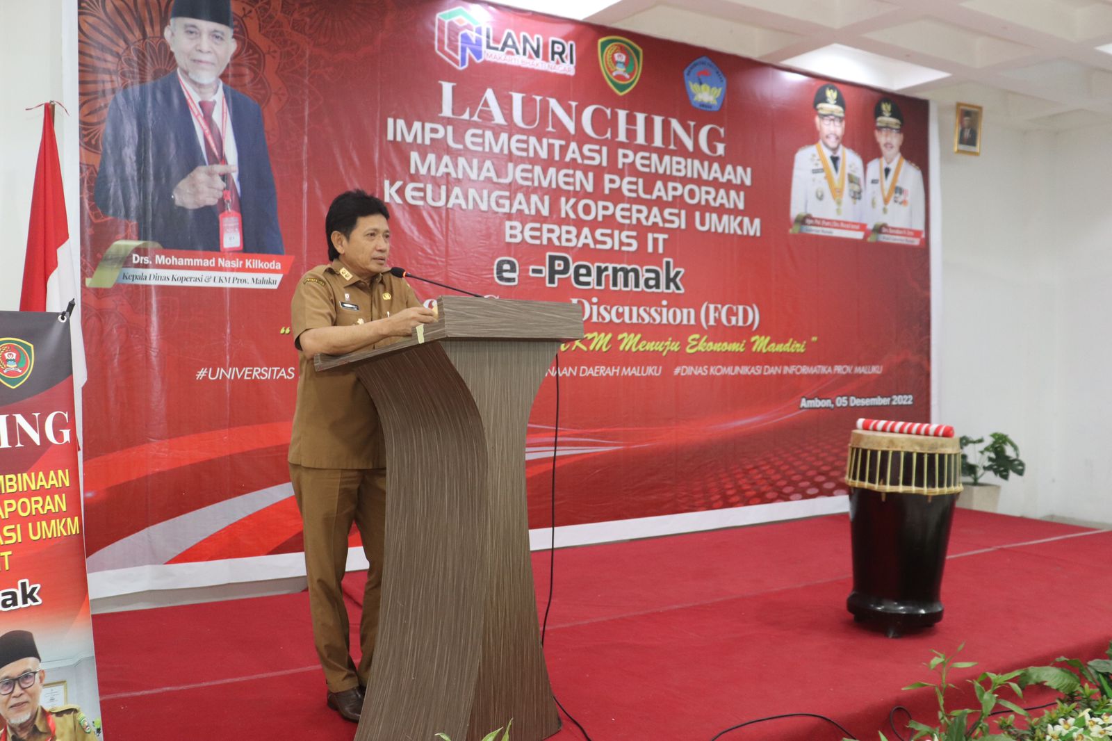 Pembinaan ini dilaunching Penjabat Sekda Maluku Sadali Ie dengan mengusung tema “Digitalisasi Koperasi UMKM menuju Ekonomi Mandiri”.