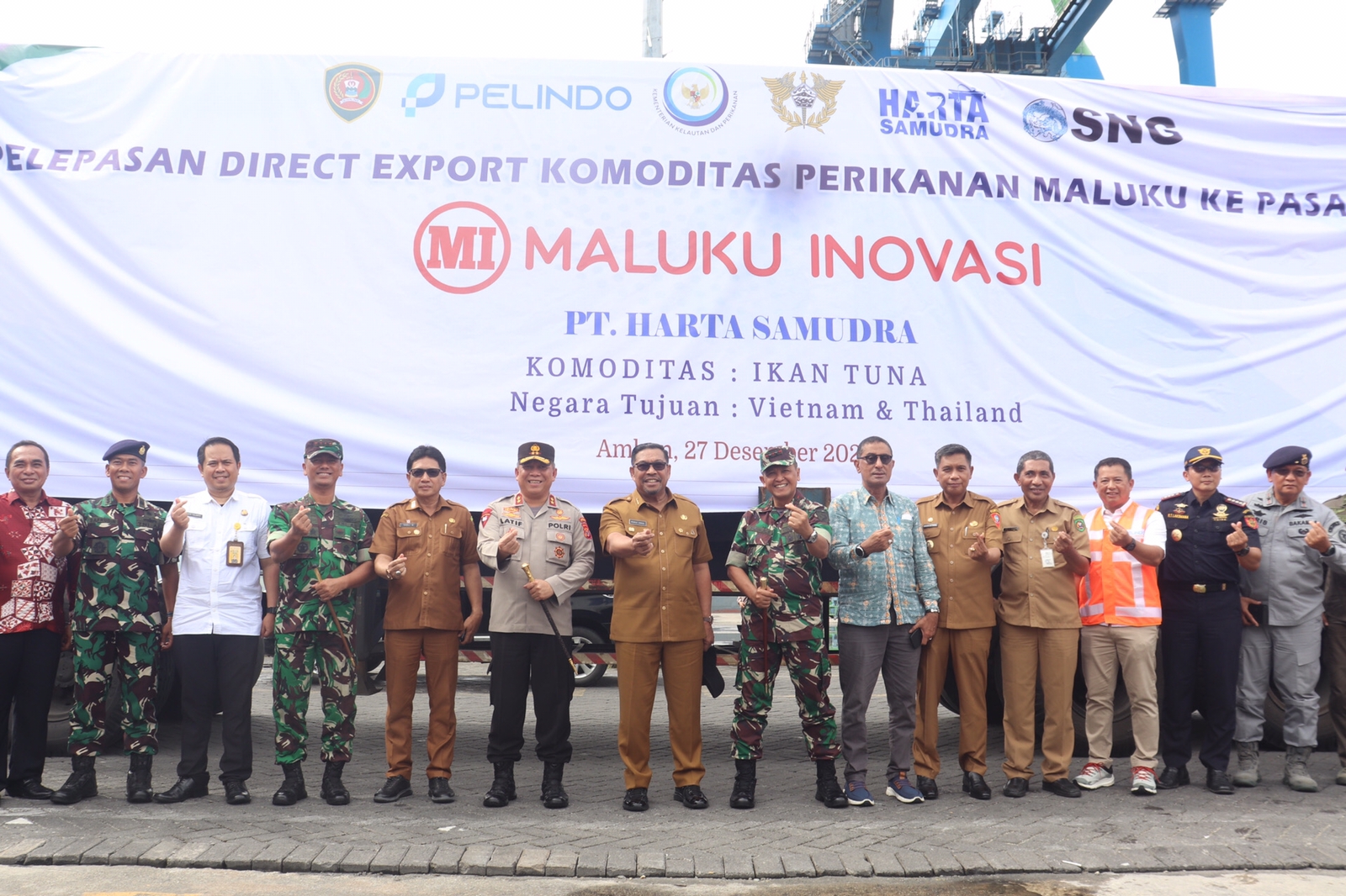 Ambon – Gubernur Maluku Murad Ismail melepas ekspor 40 Ton Ikan Tuna Maluku milik PT. Harta Samudera ke Vietnam dan Thailand, menggunakan kontainer 40 Fit.