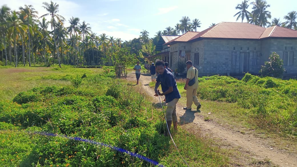 Namrole – Pj Kepala Desa Oki Lama, Kecamatan Namrole, Kabupaten Buru Selatan, Provinsi Maluku, Ibrahim Solissa, bersama staf dan BPD serta mantan Kades, Latip Solissa, melakukan pengukuran jalan baru, Selasa (28/2/2023).