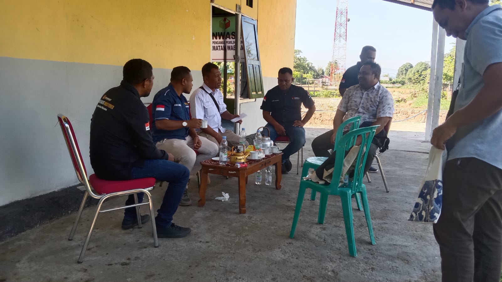 Kedatangan tim supervisi dijemput Ketua dan Sekertaris Panwas Kecamatan Leksula, Ali Hasan, SH – Arens Saleky bersama anggota, M. Rival Rahaol, Handri Teslatu, dan bendahara, Abidin Saleh.